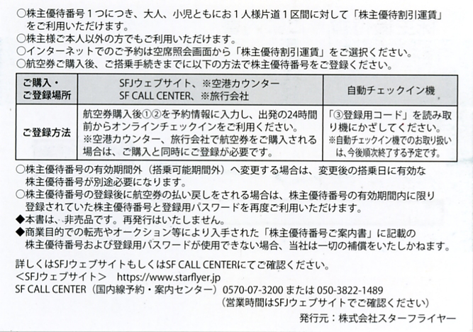 株主優待番号1つにつき、大人、小児ともにお一人様片道1区間に対して「株主優待割引運賃」をご利用いただけます。